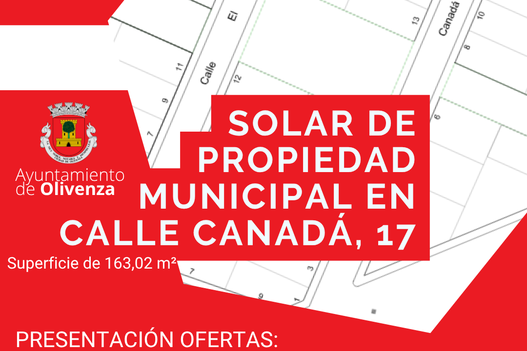 El Ayuntamiento de Olivenza ha abierto la licitación para la venta de una parcela de titularidad municipal situada en la calle Canadá nº17, en la barriada de Los Amigos, destinada a la construcción de viviendas de protección pública.