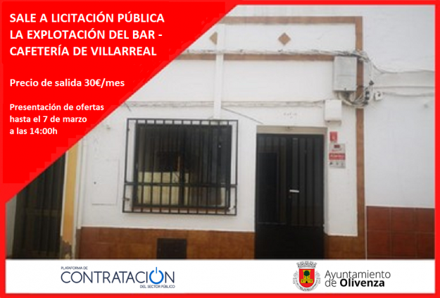 EL AYUNTAMIENTO DE OLIVENZA SACA A LICITACIÓN PÚBLICA LA EXPLOTACIÓN DEL BAR-CAFETERÍA DE VILLARREAL