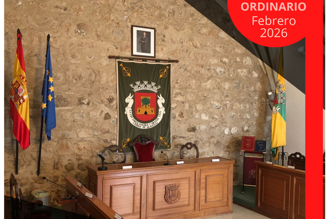 El Ayuntamiento de Olivenza celebra este 25 de febrero de 2026, una sesión ordinaria del Pleno de la Corporación municipal. La reunión tendrá lugar a las 20:00 horas en el salón de plenos consistorial.