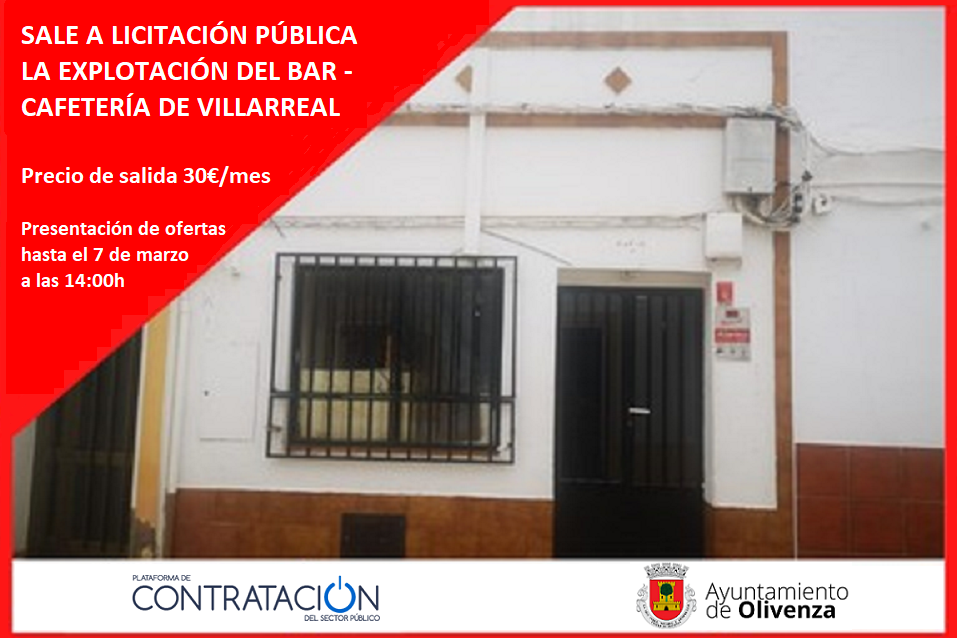 Tras la renuncia del anterior adjudicatario, nuevamente se saca a licitación el local de propiedad municipal situado en la calle Asunción nº3 de Villarreal destinado a Bar-Cafetería.