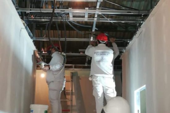La intervención práctica que han llevado a cabo de manera conjunta en la antigua cooperativa del Sagrado Corazón de Jesús, ha consistido en acondicionar la primera planta del edificio con estructuras montadas en yeso laminado y falsos techos y con instalación eléctrica. Estas actuaciones dan continuidad a las ya realizadas en la planta baja por la anterior escuela profesional, estando destinadas a la puesta a punto de este inmueble para su uso público por parte de asociaciones y colectivos locales.