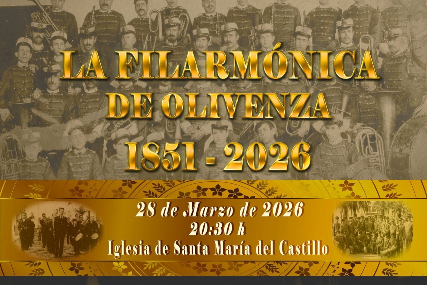 La Filarmónica de Olivenza conmemorará este sábado, 28 de marzo, sus 175 años de trayectoria ininterrumpida con un concierto extraordinario que tendrá lugar en la Iglesia de Santa María del Castillo a partir de las 20:30 horas.