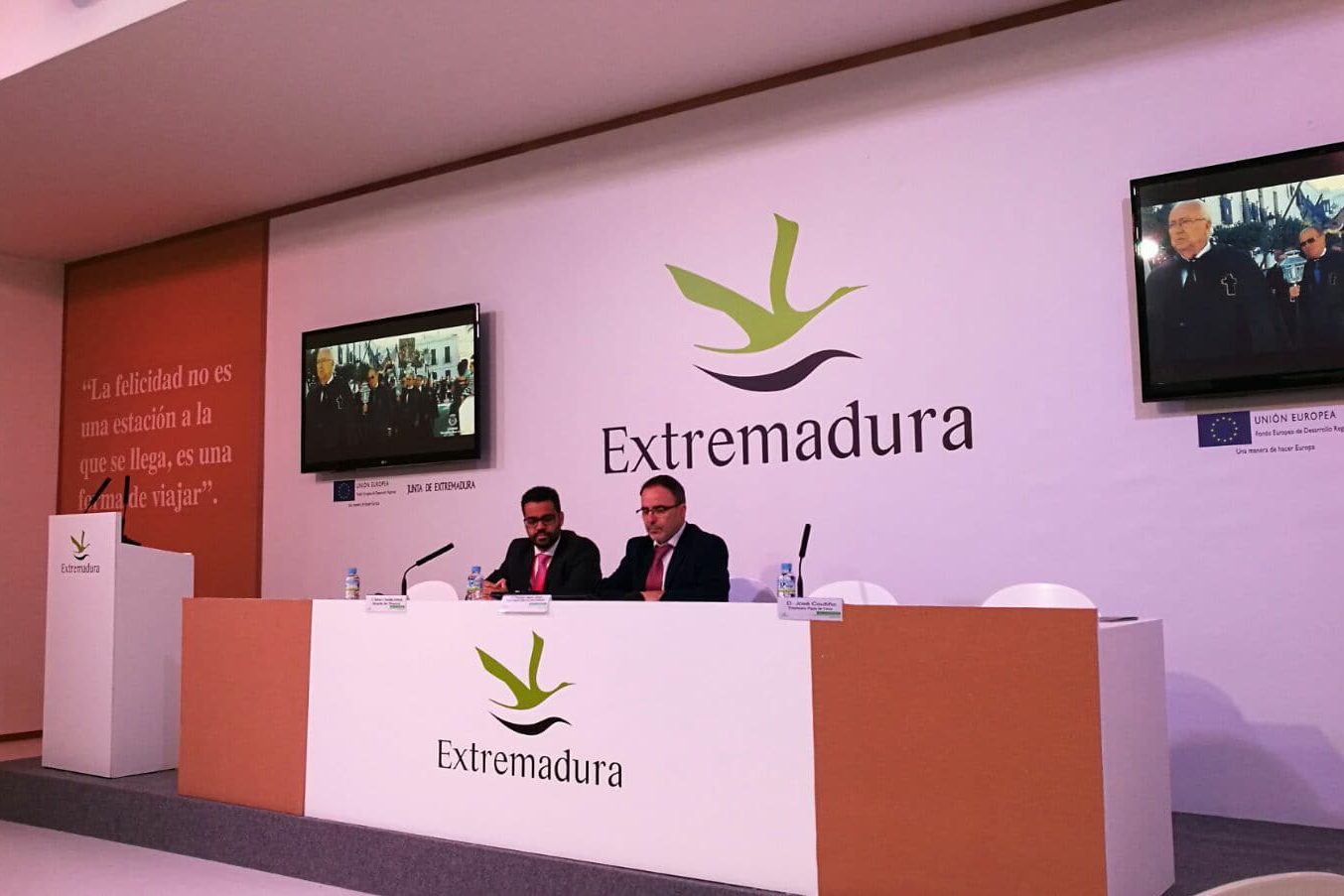El alcalde de Olivenza, Manuel José González Andrade, y el director general de Turismo de la Junta de Extremadura, Francisco Simón, han presentado en un acto celebrado en la mañana de hoy en el stand de la región en FITUR el video ‘Olivenza. Una Pasión, duas culturas’, trabajo audiovisual que recoge las tradiciones más singulares de la Semana Santa oliventina dentro de un recorrido por todas las celebraciones locales, acompañado por otro a través de la gastronomía de la zona.