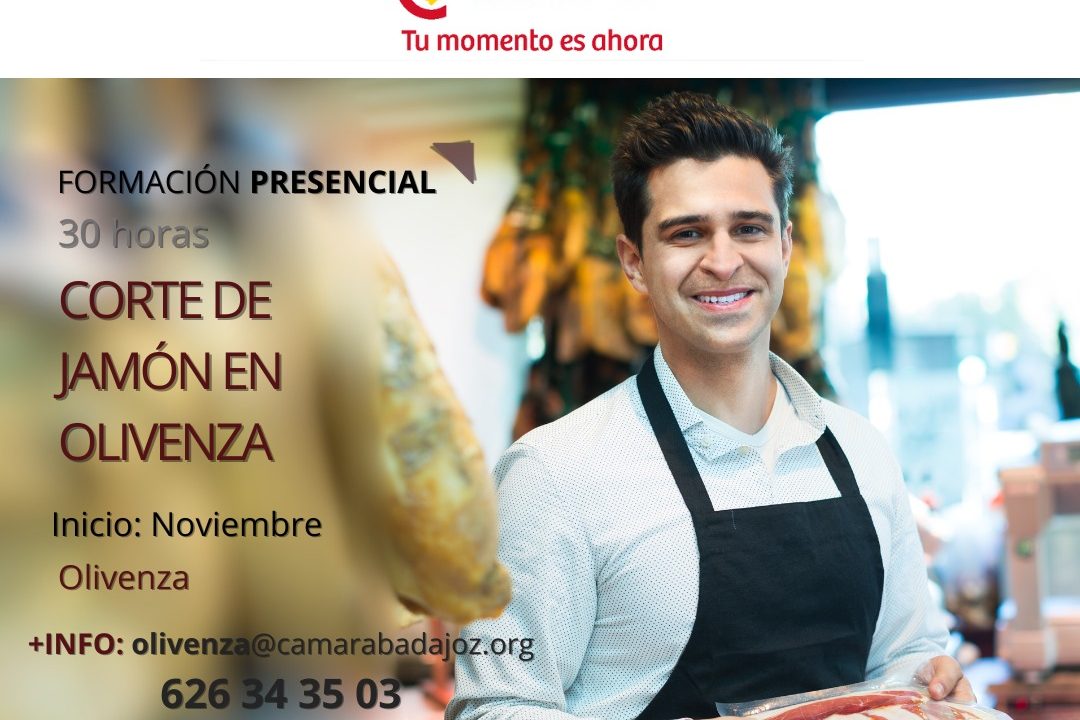 La Cámara de Comercio de Badajoz, en el marco del programa Talento 45+, pone en marcha una nueva acción formativa presencial de Corte de Jamón, dirigida a personas desempleadas mayores de 45 años. Esta iniciativa cuenta con la colaboración del Ayuntamiento de Olivenza, a través de la Universidad Popular.
